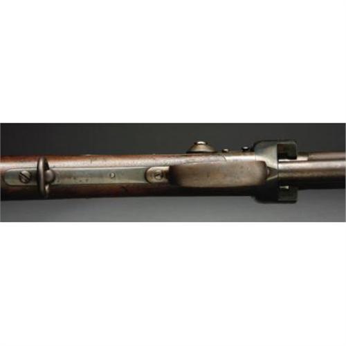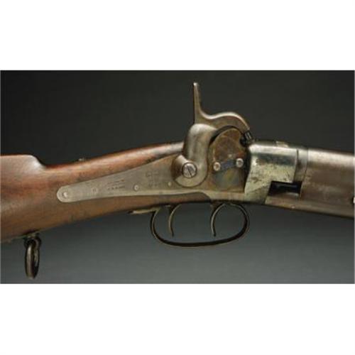 <B>GREENE CARBINE (BRITISH TYPE).</B></I> Serial number 1813, circa 1855-1857. 18” barrel in .54 calibre. Only 2000 of these percussion carbines were produced by Mass. Army Co. for the British government. Survival rate is thought to be quite low. All American produced and British inspected components and stamps are as manufactured and original for this model.<BR><BR><B>Condition:</B></I>Barrel, trigger guard, butt plate, top tang and hammer have naturally aged to a pleasing brown patina. 40% or so of the original casehardening remains on the lock. Frame extensions and trigger plate have strong blue coverage. Wood stock is excellent. This is a good, honest, uncleaned carbine from a very limited production order. <BR><BR><b>Shipping:</b> Requires 3rd Party Shipping (<a target="_blank" href="http://www.heritageauctions.com/common/shipping.php">view shipping information</a>)