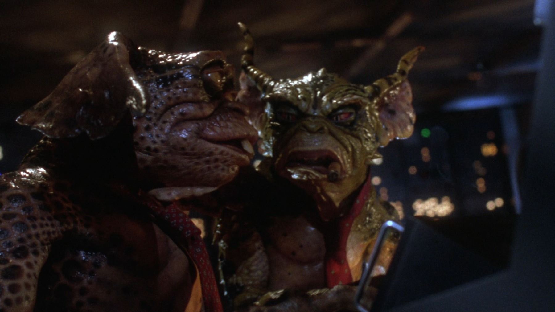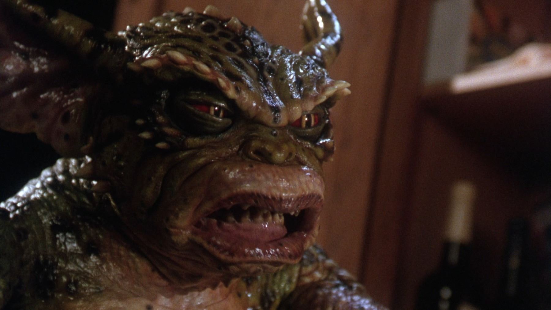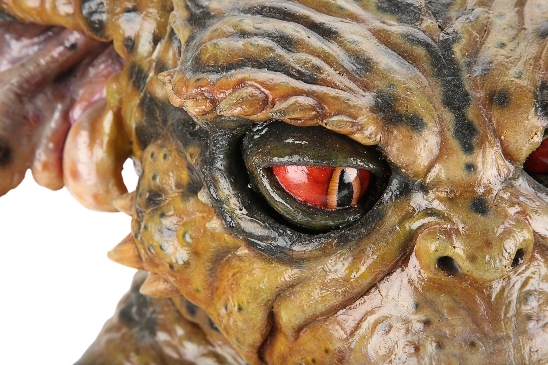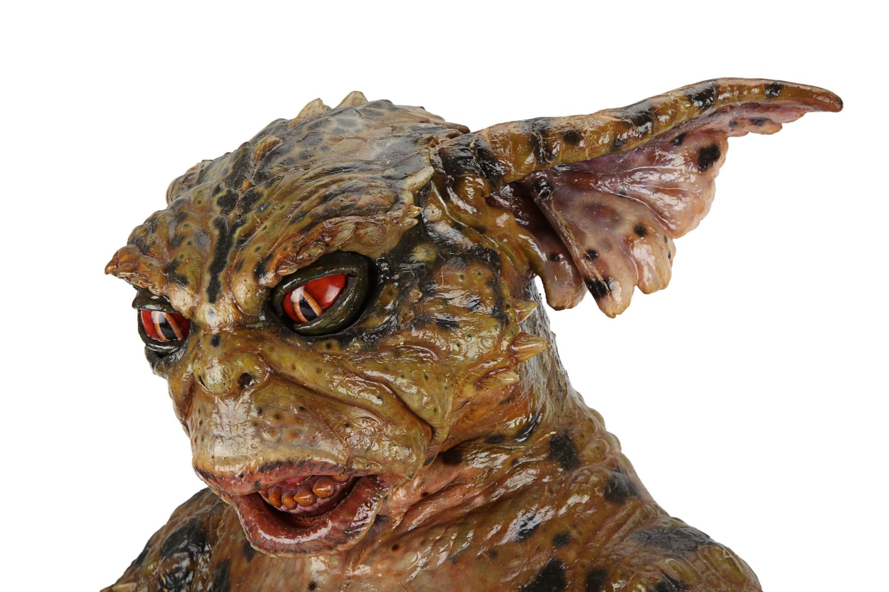 A hero George Gremlin puppet from Joe Dante's comedy-horror sequel Gremlins 2: The New Batch. George appeared several times during the film, most notably in the scenes in which he terrorised cooking show, "Microwave with Marge" and in the toy store where he smoked a cigar and tortured Gizmo. This puppet was used in scenes where the upper body was prominently featured and needed to include head and facial movement.