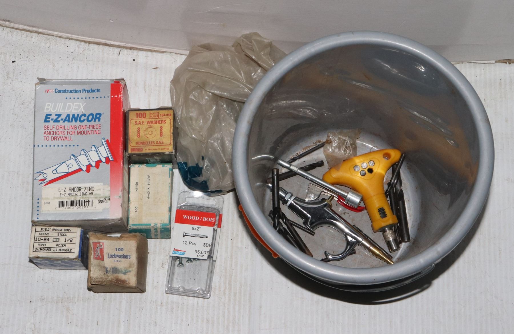 GREY BUCKET OF MOSTLY FASTENERS