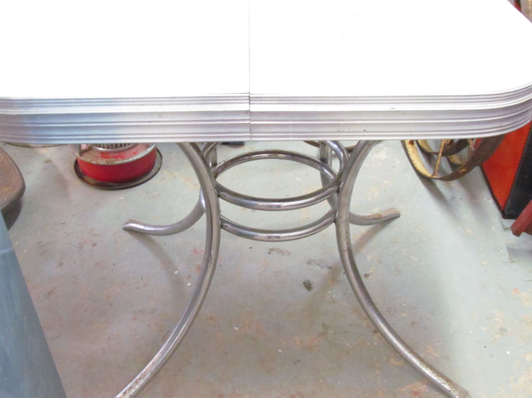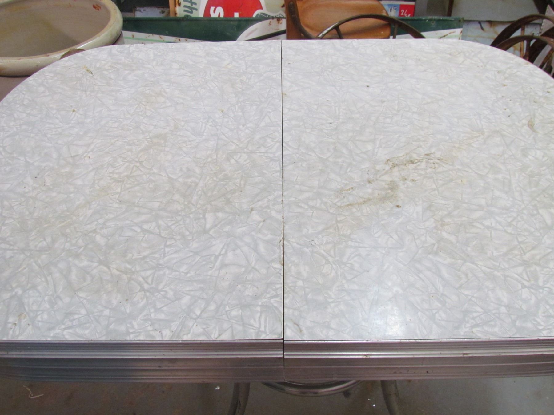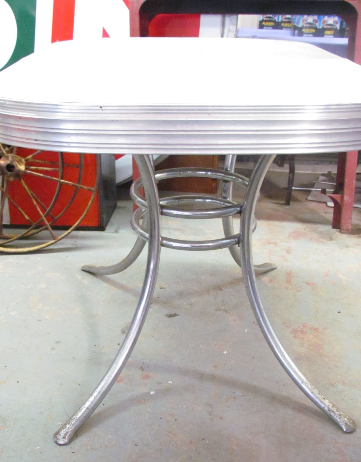 GREY CHROME TABLE (HIDDEN LEAF-ROUND PEDISTAL) *41" X 30"*