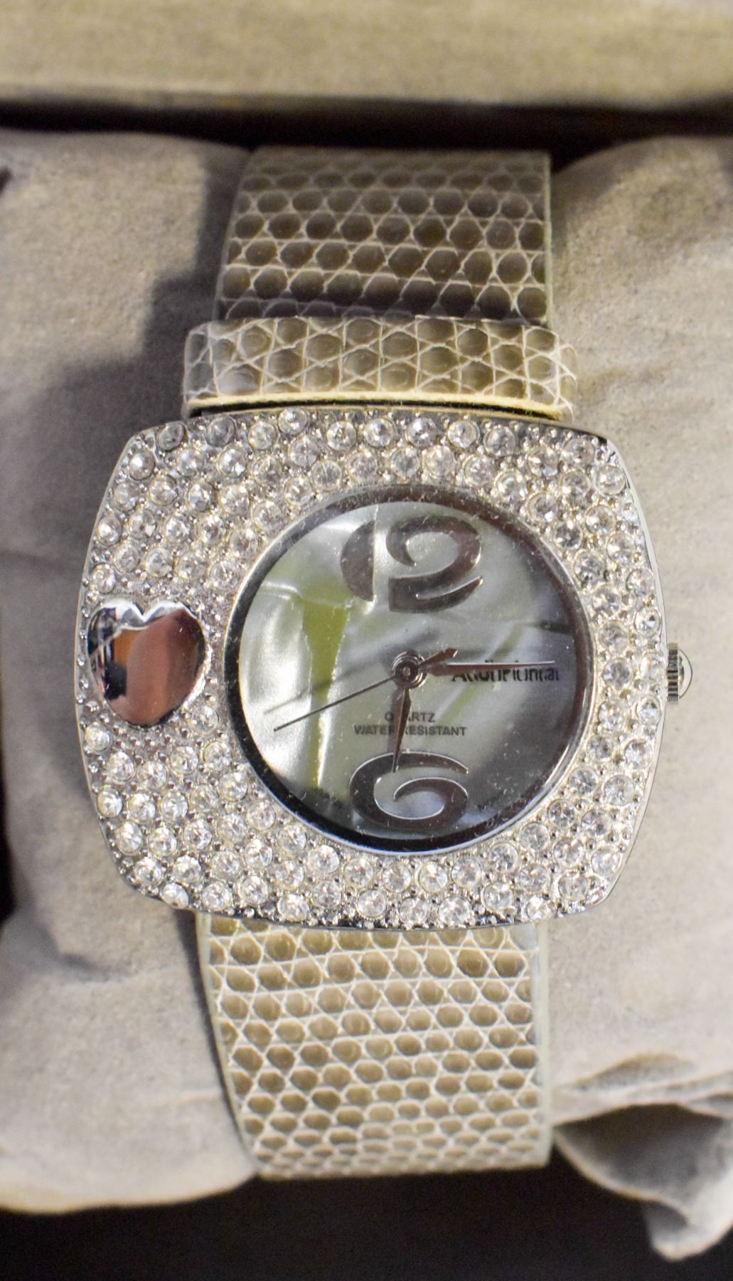 GREY HEART RHINESTONE WATCH