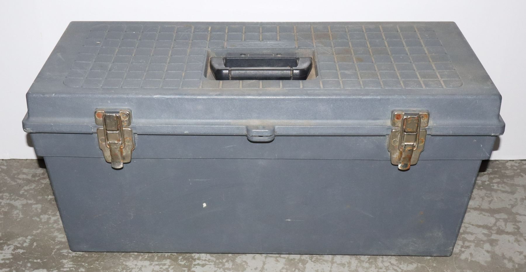 GREY PLASTIC TOOLBOX (24.5" W X 10.5" D X 11.5"T)