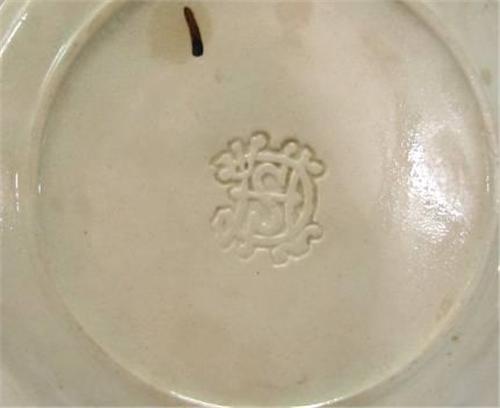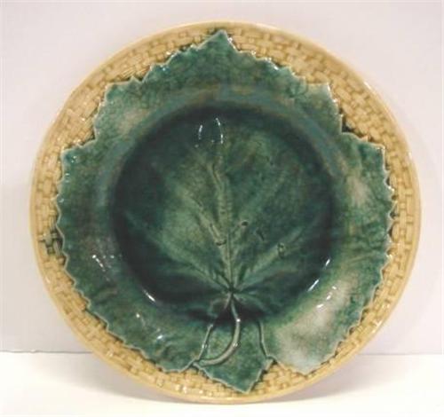 GRIFFEN, SMITH & HALL (1878-1889) MAJOLICA PLATE. Plate has relief basket weave decoration around border with relief leaf decoration at center. Marked on reverse. 7.5" Dia.