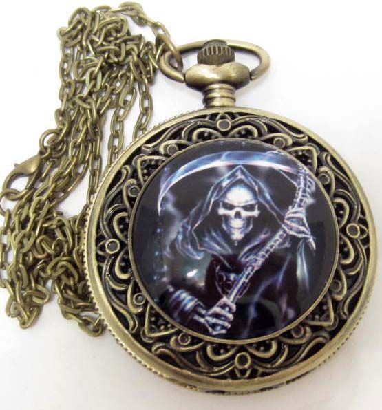GRIM REAPER POCKET WATCH WITH CHAIN