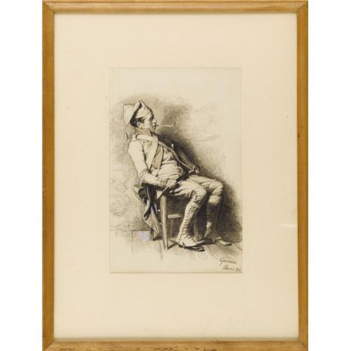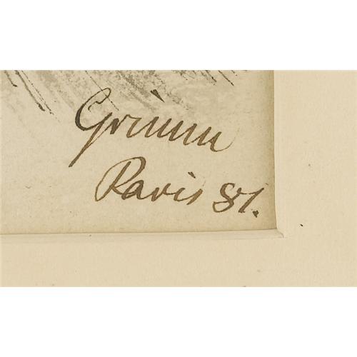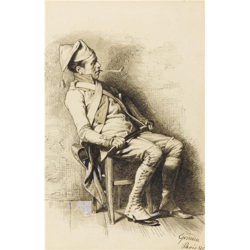 <B>GRIMM</B></I> (Nineteenth Century)<BR><I>Soldier On Duty,</B></I> 1881<BR>Gouache and ink on paper<BR>Signed lower right: <I>Grimm / Paris 81.</B></I><BR><BR> <B>Condition Report:</B> original condition<BR><BR><b>Shipping:</b> Requires 3rd Party Shipping (<a target="_blank" href="http://www.heritageauctions.com/common/shipping.php">view shipping information</a>)