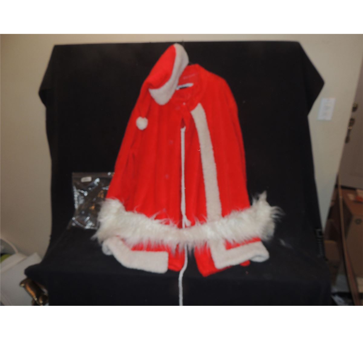 The unfortunate part is that this was altered or reduced to a more generic Santa suit since production. The only original longer trim is the neck piece. The label has come loose, but is included.
