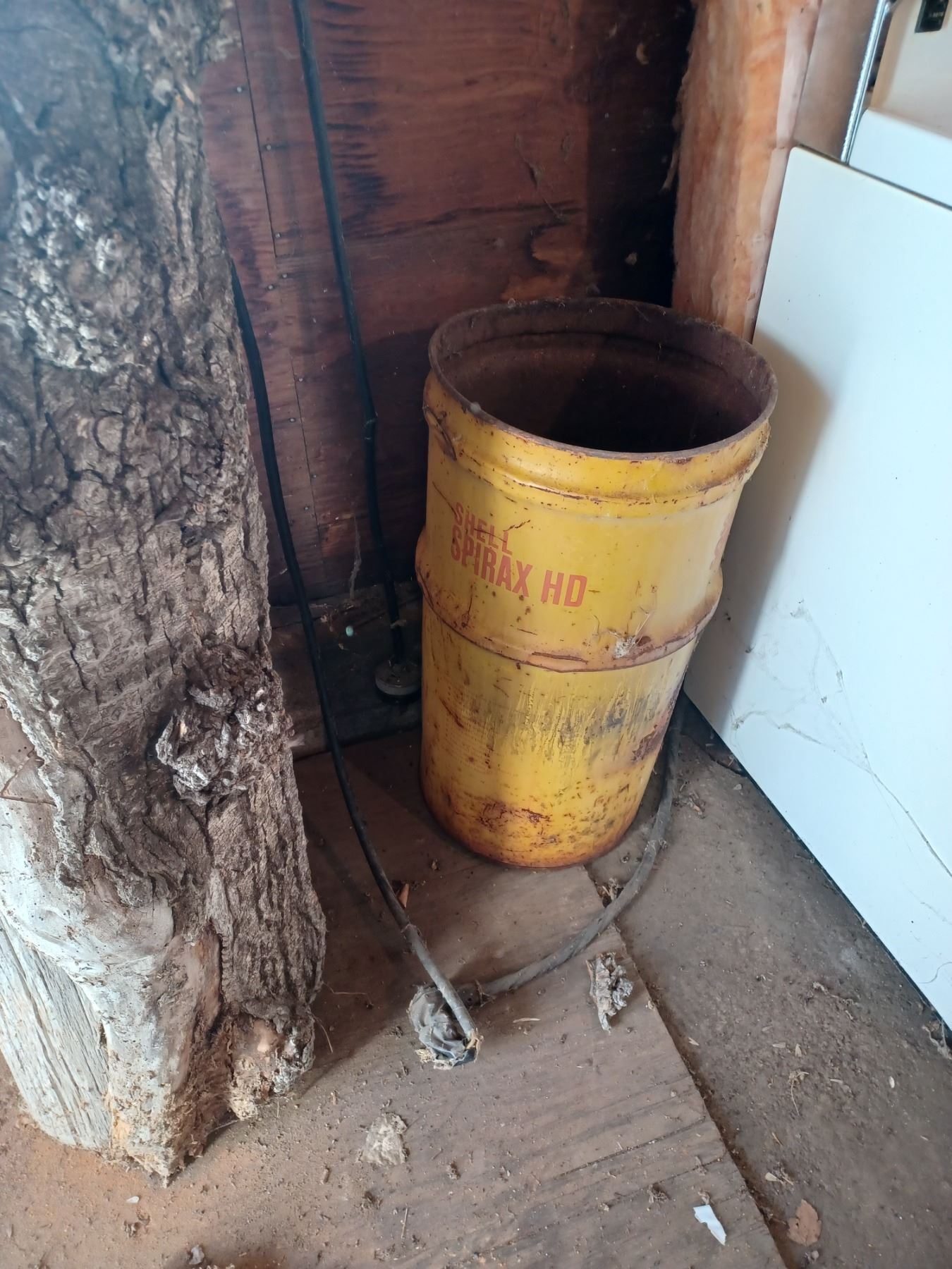 GRINDER (HOME MADE), SHELL OIL DRUM AND CONTENTS OF CORNER - PLEASE SEE IMAGES