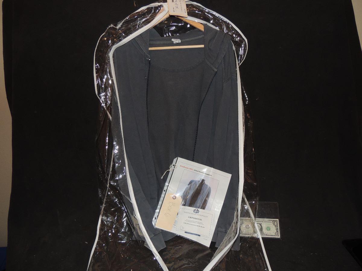 Grindhouse: Planet Terror: 2007. costume worn by a Sicko soilder. THIS ONE IS A BLUE LONG SLEEVE SHIRT WITH OLIVE UNDERSHIRT WITH STUDIO DISTRESS SUCH AS TEARS AND WEAR. comes with "Profiles in History" tags and COA from Premier.