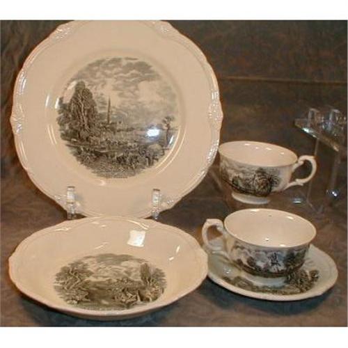 <p>This lot of black transferware plates by W.H. Grindley, England - includes: (sizes in inches)