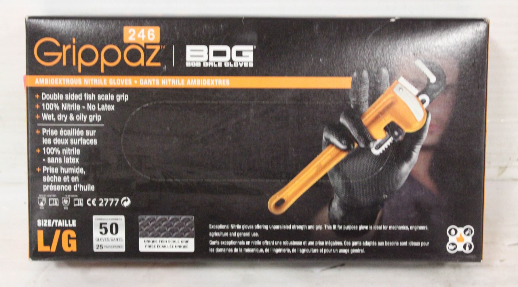 GRIPPAZ BDG DISPOSABLE GLOVES SIZE L/G 50PC