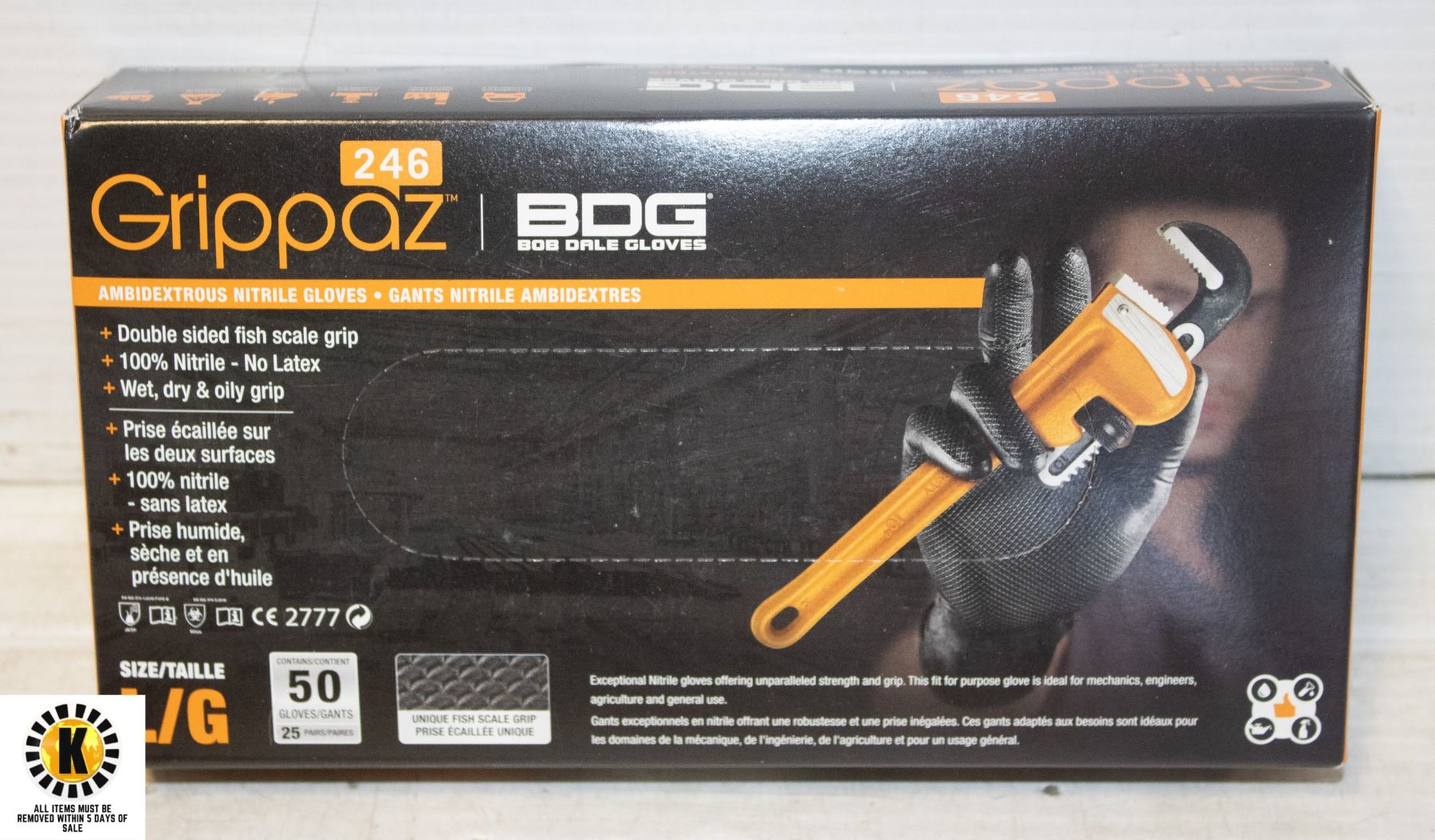 GRIPPAZ BDG DISPOSABLE GLOVES SIZE L/G