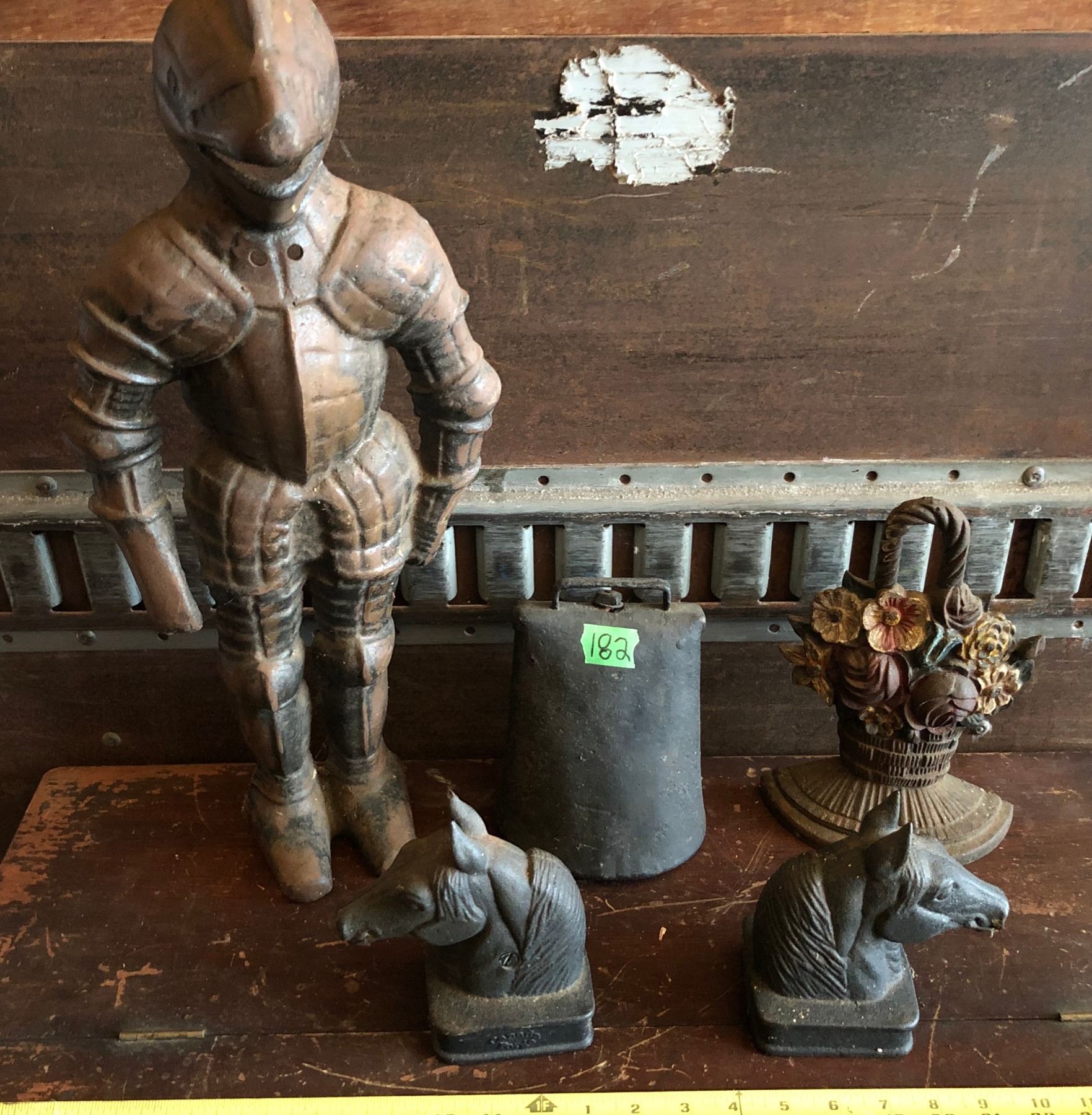 INCLUDES, LARGE COW BELL, DOOR STOP, BOOK ENDS, ETC