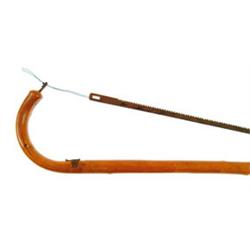 GROUND KEEPERS CANE. 38-1/4" long with 24" steel sawblade which folds into the shaft. The body of the cane has been carved to emphasize the knots. It is marked "BRIGGS / LONDON". The blade is not quite long enough to meet the hook at the end of the crook, probably due to a straightening over the years. There is cracking at the two knots on the grip portion indicating that this has happened. There is a sliding brass catch for the blade. CONDITION: Light surface rust on the blade. Cracks as noted in the cane. 4-51298 FS470