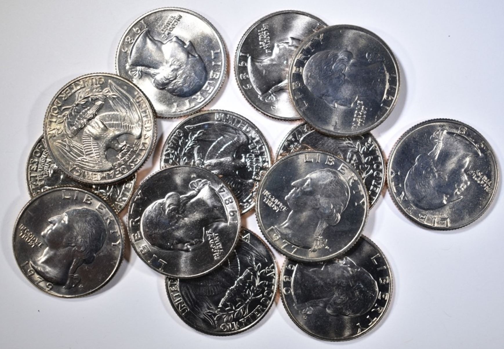 77 GEM BU, 77-D CH BU, 78 GEM BU, 78-D CH/ GEM BU, 79-D GEM BU, 80-D CH/GEM BU, 81-P CH BU, 84-P AU/BU, 85-P CH/GEM BU, 85-D BU, 86-P AU, 86-D XF, & 87-P GEM BU ESTIMATE $70 - $80.