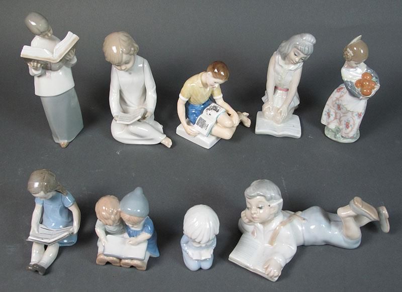 -lot comprised of nine porcelain figures by Tengra, Royal Doulton, Lladro & Laphin, as well as several unmarked pieces.
