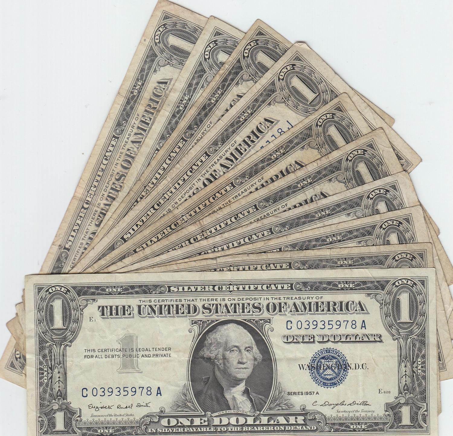 GROUP OF 10 $1 SILVER CERTIFICATES MIX OF 1935 & 1957