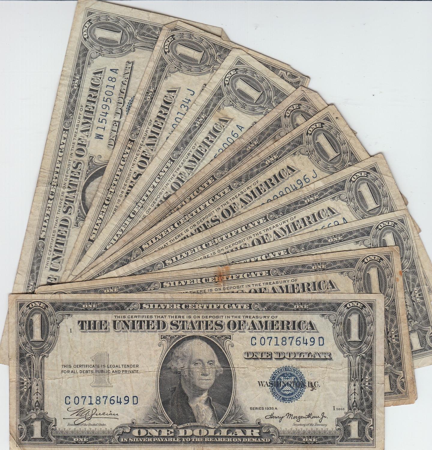 GROUP OF 10 MIXED DATE SILVER CERTIFICATES $1