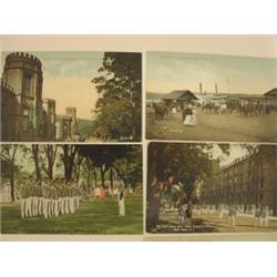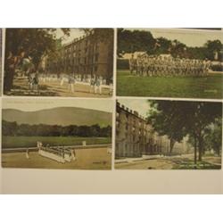 GROUP OF 10 WEST POINT, N.Y. WORLD WAR I ERA POSTCARDS. Color postcards feature scenes of buildings, landmarks, and cadet life at the United States Military Academy in West Point, New York. All are marked on reverse "The Valentine & Sons Publishing Co., Ltd., New York." None are postmarked.