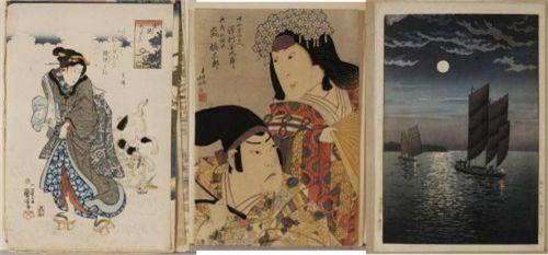 GROUP OF 12 JAPANESE WOODBLOCK PRINTS including Toyokuni and J. Sekino, CONDITION: generally fair at best, heavy toning to Sekino. PACKING AND SHIPPING BY FAIRFIELD AUCTION WITHIN CONTINENTAL USA (excluding insurance) $30