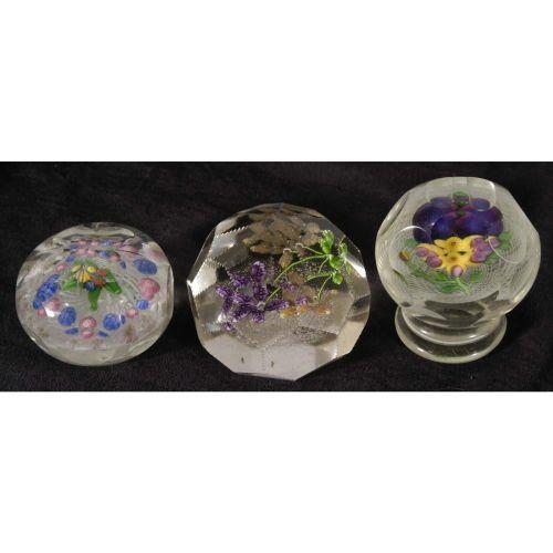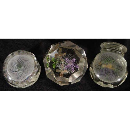 GROUP OF (3) ANTIQUE ART GLASS PAPERWEIGHTS, scratches and minor chips, PACKING AND SHIPPING: Fairfield Auction will provide packing and shipping (excluding insurance) within the Continental U.S. for $20. Buyer is welcome to use any other service or pick-up at the gallery.