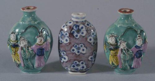 GROUP OF 3 CHINESE SNUFF BOTTLES, largest 2 3