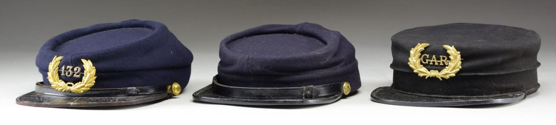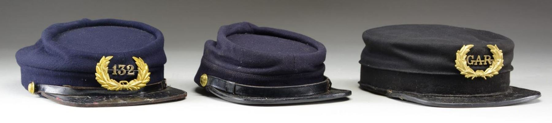 All 3 have labels, one has New Jersey National Guard buttons, the other 2 GAR, 2 with hat wreaths. CONDITION: very good overall. (02-20006/JS). $200-00.