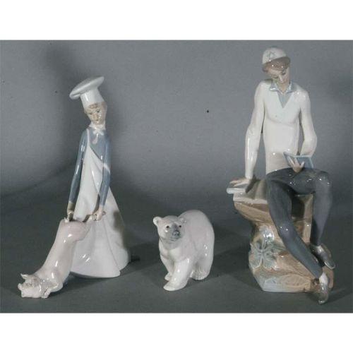 1 GROUP OF 3 LLADRO FIGURES CONDITION REPORT: excellent, largest 12" high, PACKING AND SHIPPING (excluding insurance) by Fairfield Auction to points within the Continental U.S.A. and Canada (all other international must be handled by 3rd party shipper) $40.