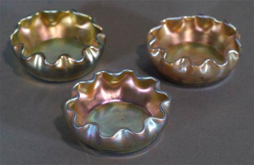 GROUP OF (3) TIFFANY FAVRILE MASTER SALTS, each 2 1/2" diameter, condition: excellent-no damage, PACKING AND SHIPPING (excluding insurance) $20,