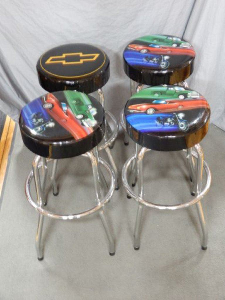 GROUP OF 4 CAR-RELATED ADVERT. STOOLS LOCATION: UPPER BACKROOM