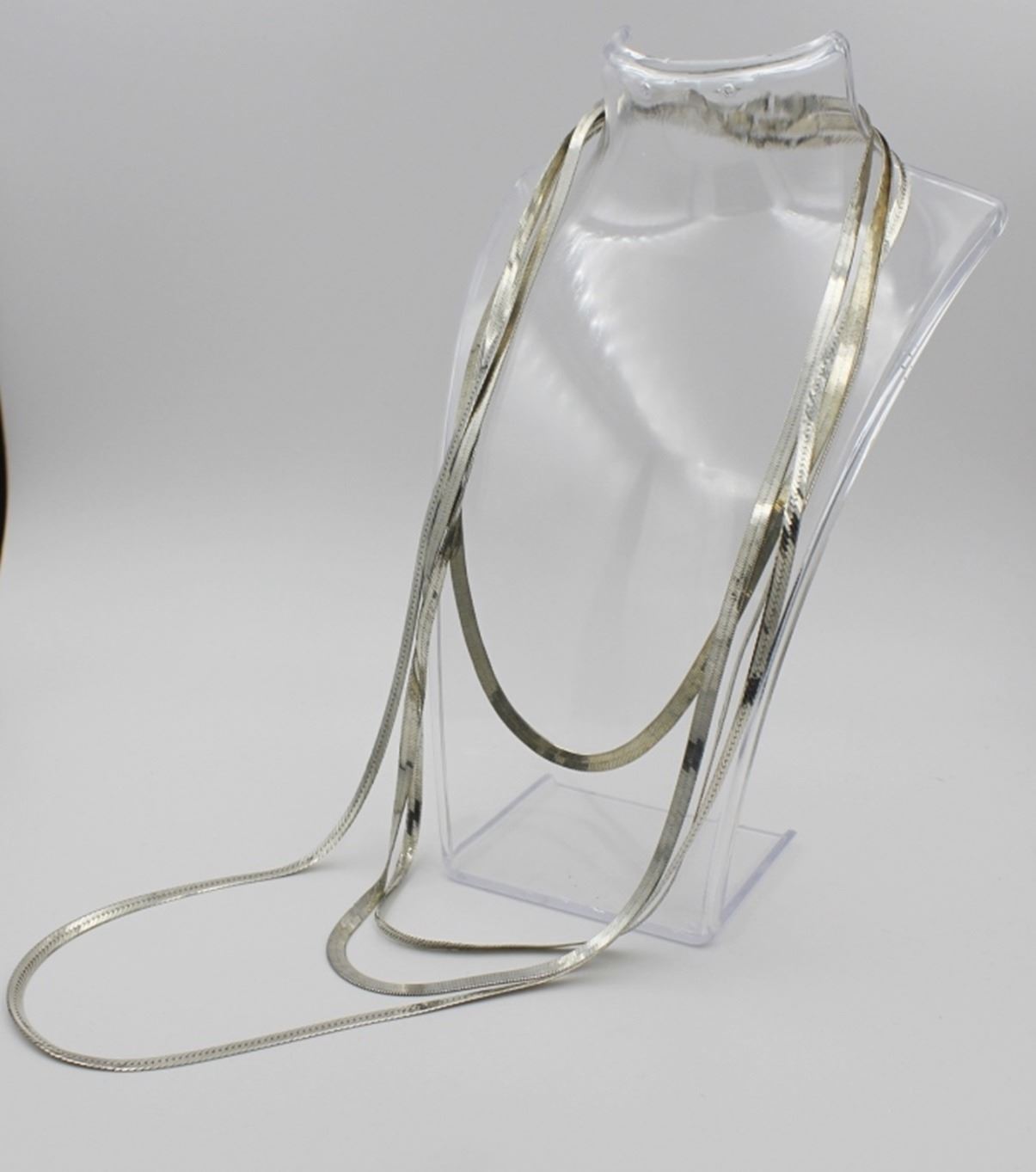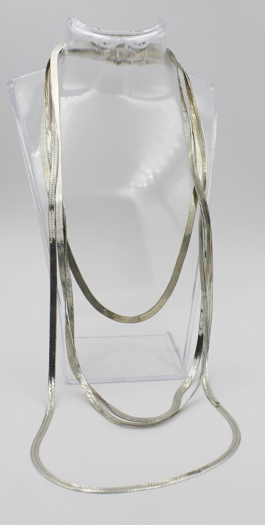 GROUP OF 4 HERRINGBONE "ITALY" .925 SILVER CHAIN NECKLACES. VARIOUS LENGTHS. 17.5", 24", 23" AND 30" LONG. TOTAL WEIGHT: 46.7 GRAMS. PRE-OWNED. ESTIMATE: $80-$100