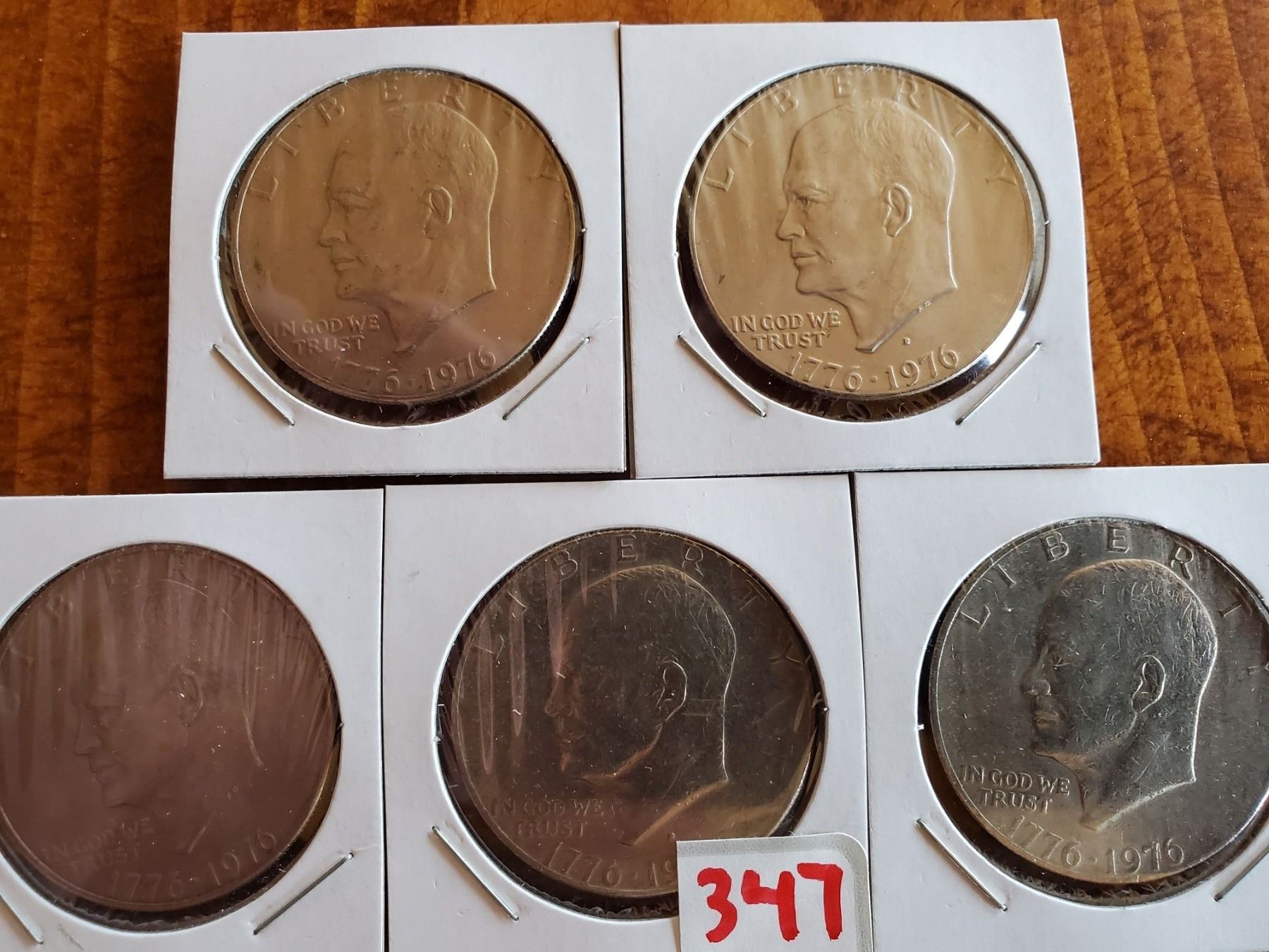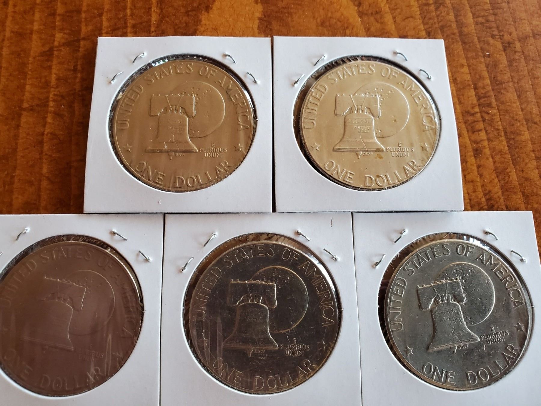 GROUP OF 5 1975 EISENHOWER DOLLARS - DATE OF 1776-1976 USED FOR 2 YEARS