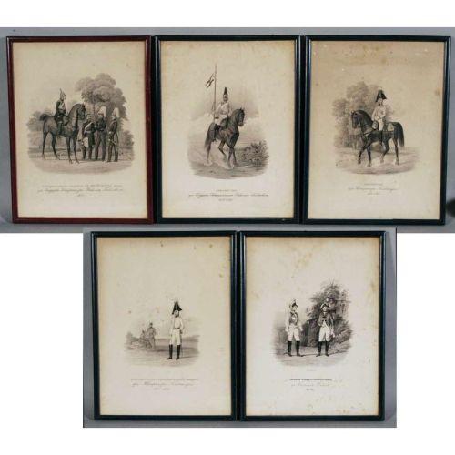 1 GROUP OF 5 RUSSIAN MILITARY LITHOGRAPHS 15 1/2" x 12" 19th century CONDITION REPORT: stains and light toning. PACKING AND SHIPPING (excluding insurance) by Fairfield Auction to points within the Continental U.S.A. and Canada (all other international must be handled by 3rd party shipper) $40.