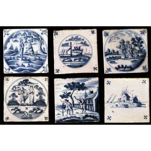 1 GROUP OF (6) DELFT TILES each 5"x5" 18th century CONDITION REPORT: typical chipping at edges. PACKING AND SHIPPING (excluding insurance) by Fairfield Auction to points within the Continental U.S.A. and Canada (all other international must be handled by 3rd party shipper) $30.