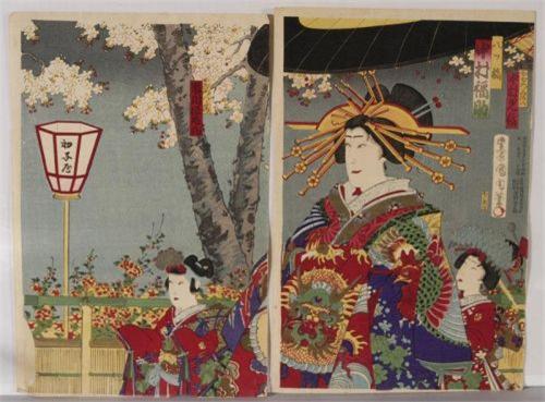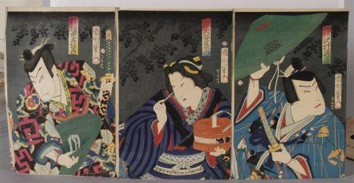 GROUP OF 6 JAPANESE WOODBLOCK PRINTS including double oban and triple oban, CONDITION: toning, tears and wrinkles. PACKING AND SHIPPING BY FAIRFIELD AUCTION WITHIN CONTINENTAL USA (excluding insurance) $30