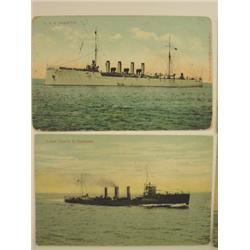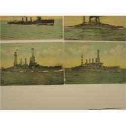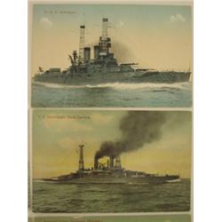 GROUP OF 6 EARLY 20TH CENTURY NAVAL POSTCARDS. Color postcards feature warships from U.S.'s naval fleet in the early 20th century. Featured ships are the cruiser Tennessee, battleship Louisiana, dreadnaught South Carolina, U.S. destroyer, U.S.S. Arkansas, & U.S.S. Chester. One is postmarked 1909. Makers include S.H. Kress & Co., N.L. Stebbins, Boston, & Mason Bros. & Co., Boston.