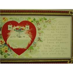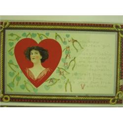 GROUP OF 6 VALENTINE'S DAY GILT DECORATED POSTCARDS. All feature poems of front. Marked on reverse with A.M.P. Co. logo. None are postmarked.