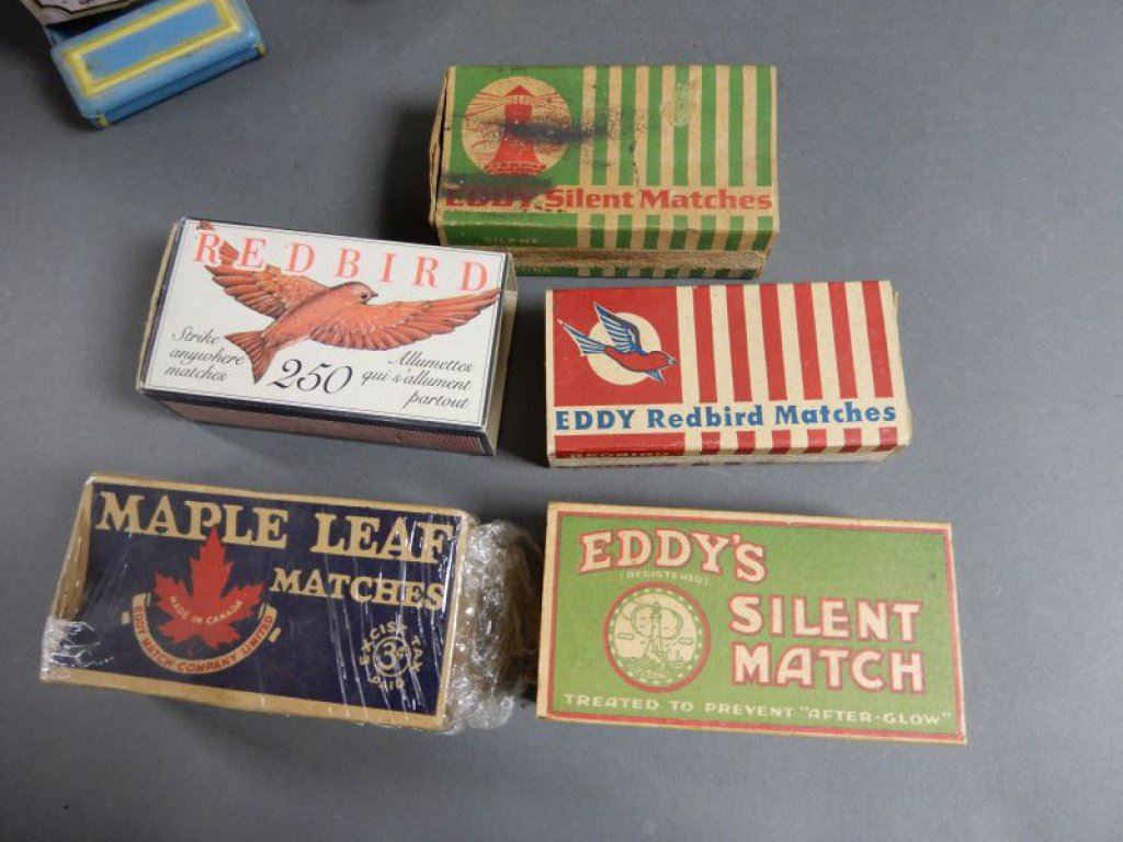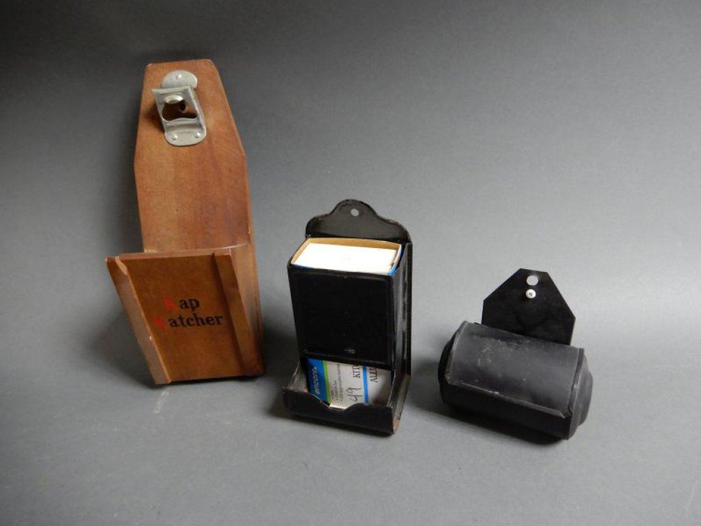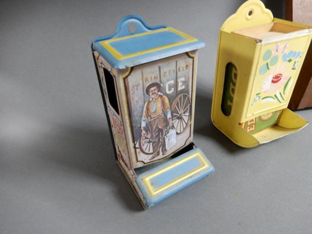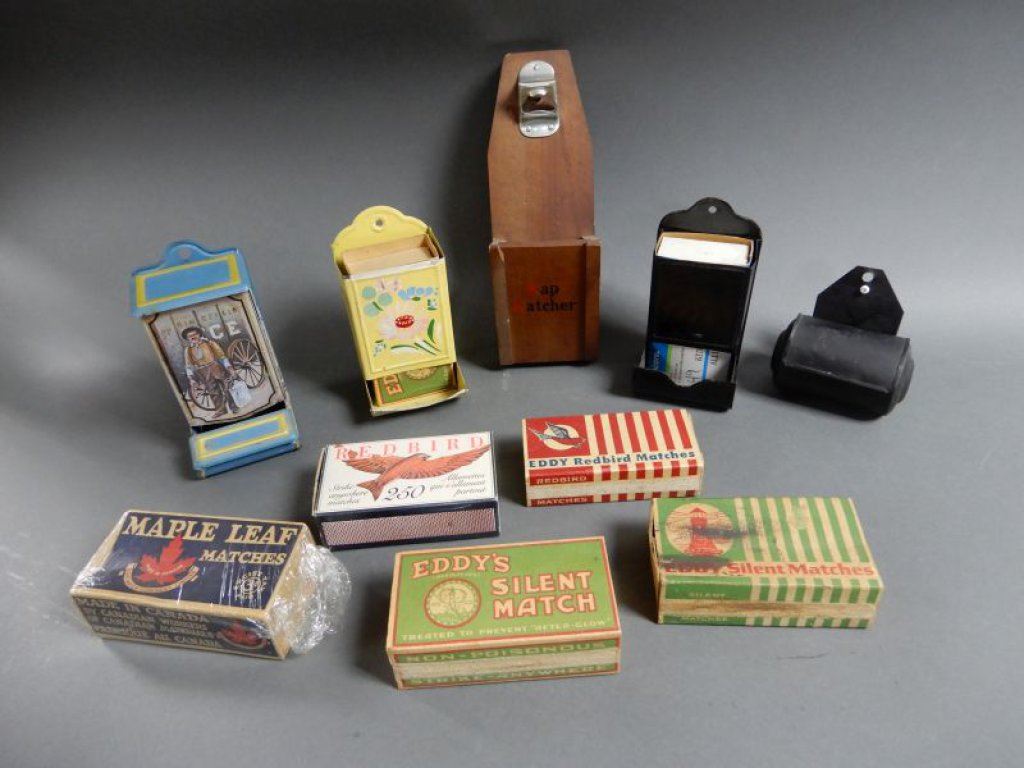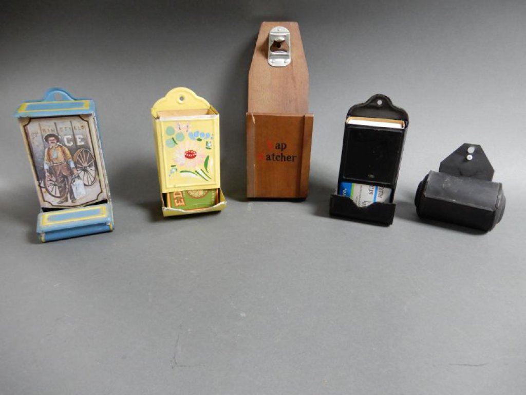 GROUP OF 7 MATCH BOXES & 4 MATCH BOX HOLDERS 1 KAP KATCHER LOCATION: LOWER LEFT