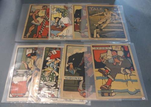 GROUP OF 8 COLLEGE LIFE POSTERS including Blumenthal and S.W. Mitchell each about 14"x22" circa 1900 various tears/creases/stains estimate 400-600