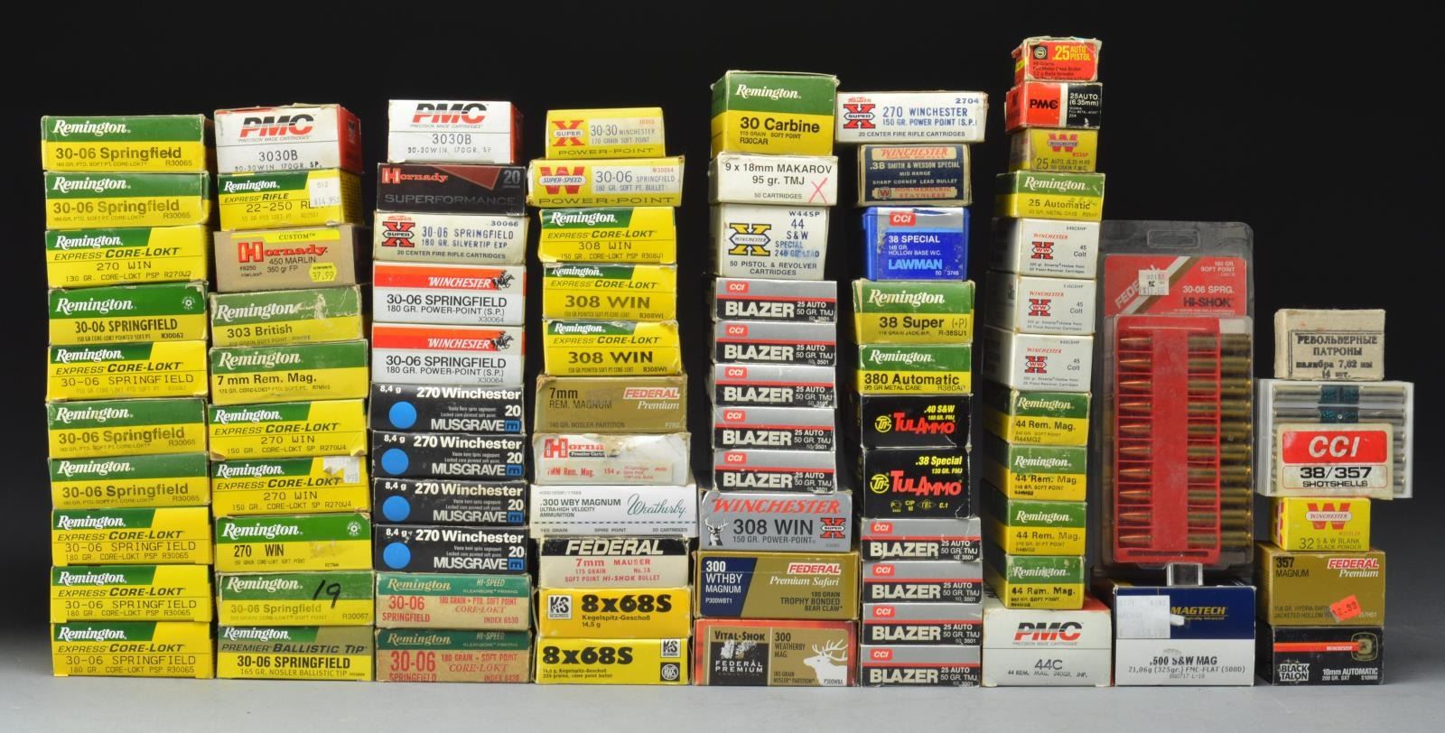 RIFLE- 270 WIN: 1 box of 20 Remington. 130 gr. PSP. / 3 Boxes of 20 Remington 150 gr. Core-Lokt. / 4 Boxes of 20 Musgrave 8.4 g SP. / 1 Box of 20 Winchester 150 gr. SP.