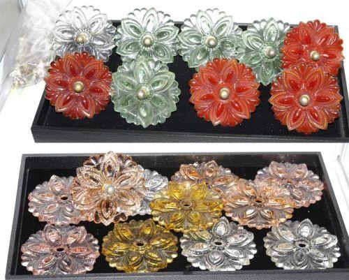 GROUP OF CURTAIN TIE BACKS, PROBABLY SANDWICH GLASS WORKS, (20) in various colors including tomato red