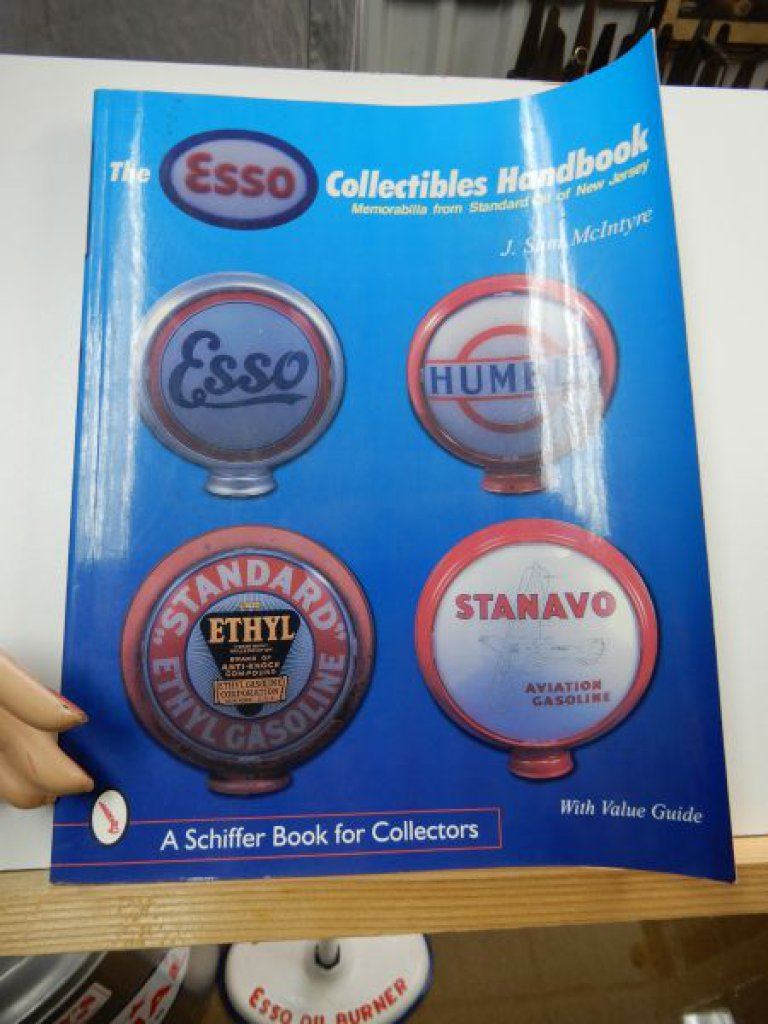 GROUP OF ESSO COLLETIBLES ESSO MANNEQUIN ATTENDANT - 2 BOOK STANDS WITH ESSO EMBOSSED CAST BASES - 2 BOOKS ESSO COLLECTIBLES & GAS PUMP IDENTIFICATION & PRICE GUIDE - GARBAGE CAN LOCATION: LOWER LEFT