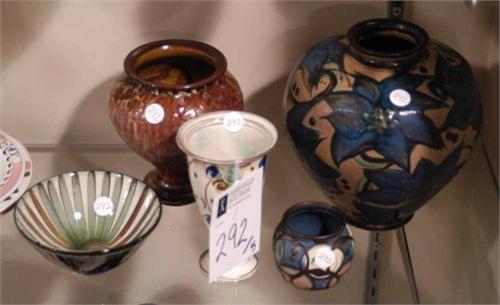 GROUP OF FIVE HERMAN KAHLER POTTERY ITEMS packing and shipping (excluding insurance) $50