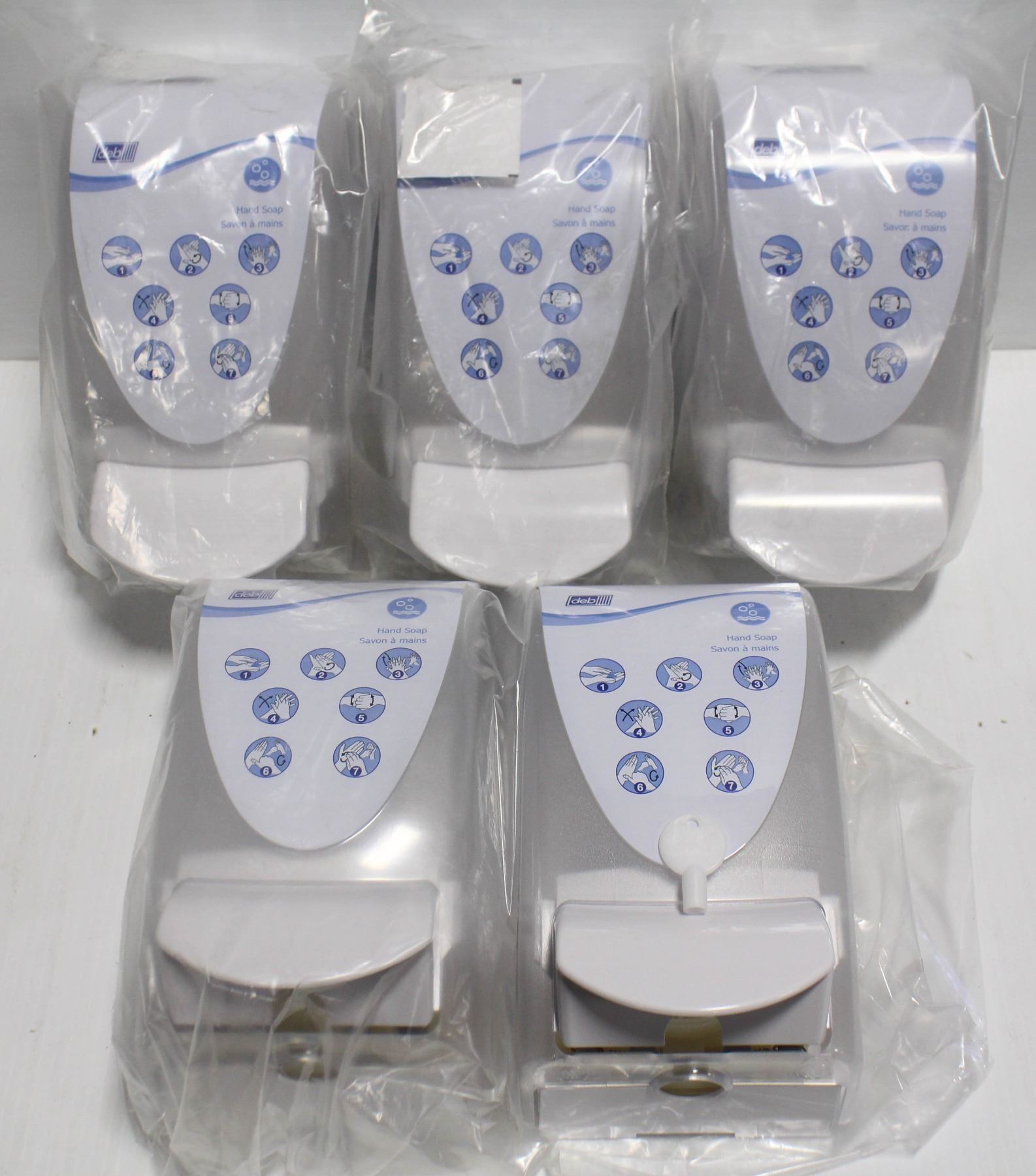 GROUP OF FIVE NEW 1L DEB HAND SOAP DISPENSERS
