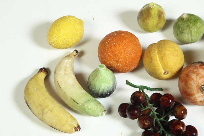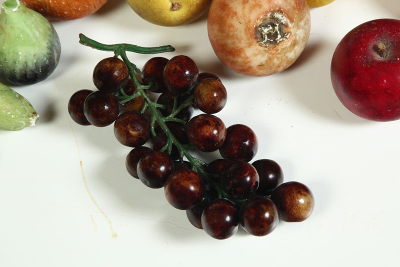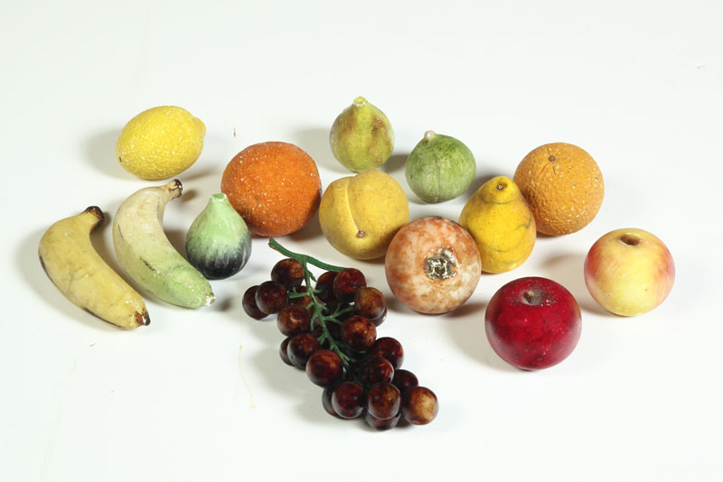 American and European, 20th century. Approximately thirty pieces of fruit including apples, oranges, bananas, grapes, figs, lemons and a pomegranate. Original polychrome paint.