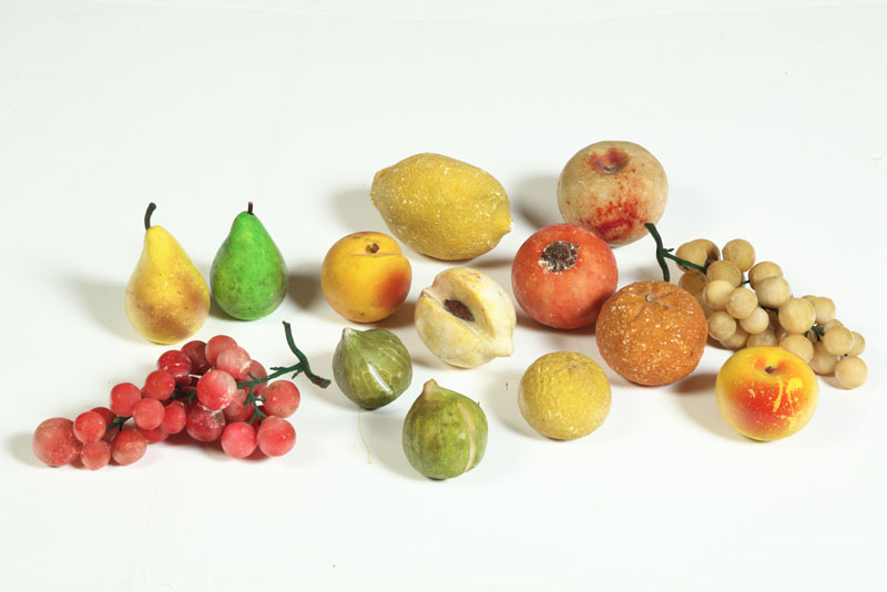 American and European, 20th century. Approximately thirty pieces of fruit including apples, oranges, bananas, grapes, figs, lemons. Original polychrome paint.
