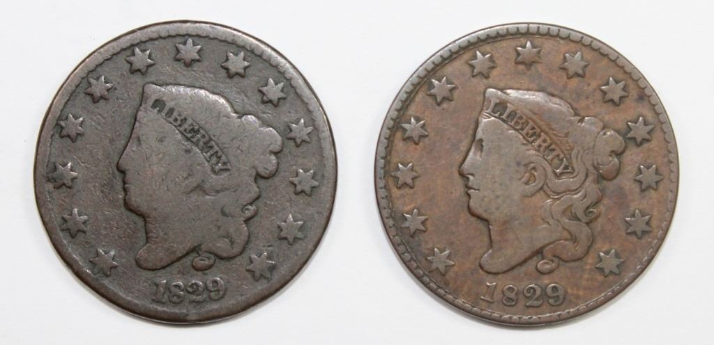 1829 VG LARGE LETTERING AND 1829 MEDIUM LETTERS FINE. ESTIMATE: $200-$250