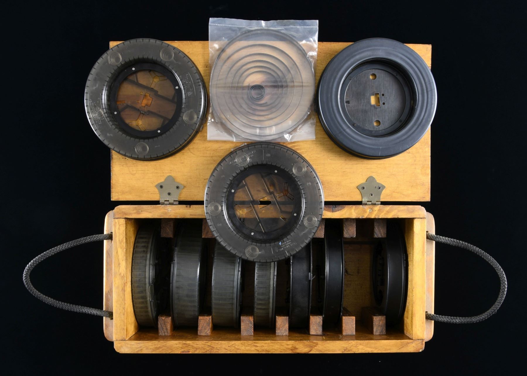 Cal. .22LR. A rare grouping of very desirable American 180 drums. This lot consists of 3 steel drums & 7 plastic drums, w/ 1 winder. Steel drums appear to be 176 rd. drums. The plastic drums are all manufactured by E&L, aside from 1 which is unmarked. Plastic drum capacity appears to be 165 rd w/ 5 drums & 2 being 220 rd. UNATTACHED ACCESSORIES: Custom, fitted wood crate, for 8 drums, 2 spare steel base plates & 1 spare steel spring. CONDITION: All drums move freely. 2 steel drums & 2 plastic drums do not have a proper lock, allowing them to spin freely at all times. 1 E&L plastic drum has a cracked center portion. Of the 2 spare blase plates, 1 appears to have a functioning lock. Spare spring has a break toward the center. PROVENANCE: From the Lifelong Collection of Brian Linde. (02-23926-1/JZ). $500-800.