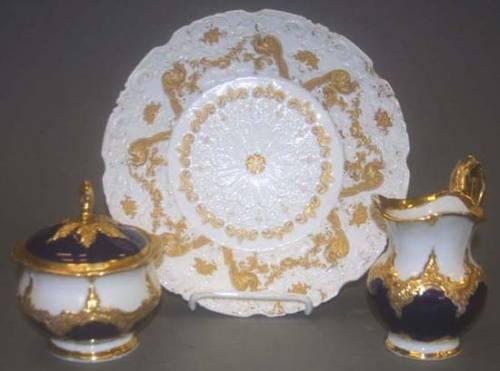 GROUPING OF (3) MEISSEN CABINET ARTICLES including decorative plate, creamer and sugar bowl