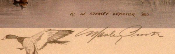 Included is a limited edition print from W. Stanley Proctor entitled "Lessenberry Hole" (Ark.) Resigned (with cameo) and numbered (64/250). Overall size is 30 by 37 inches. There is a Mel Hunter limited edition of "North over Hudson Bay" (77/300) overall