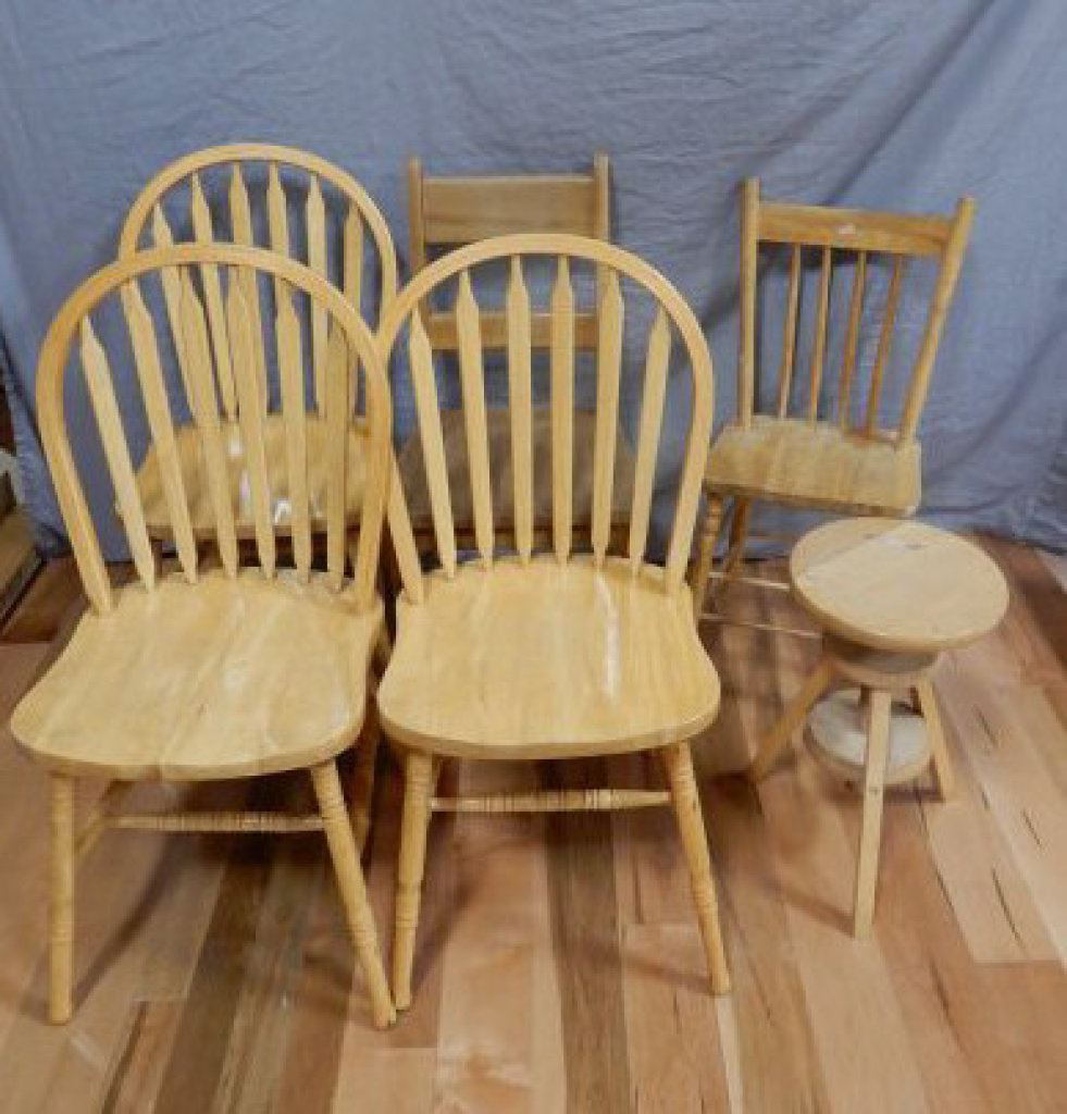 GROUPING OF 5 WOODEN CHAIRS & STOOL LOCATION: UPPER BACKROOM